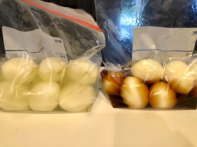 旅先で買った小さ目の大量卵を茹でて、むいて、むいて、むいて・・・