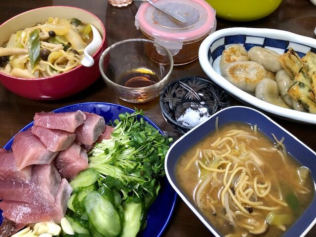 あとは、ニラ饅頭とチヂミかな。またもや、統一性のない食卓だ