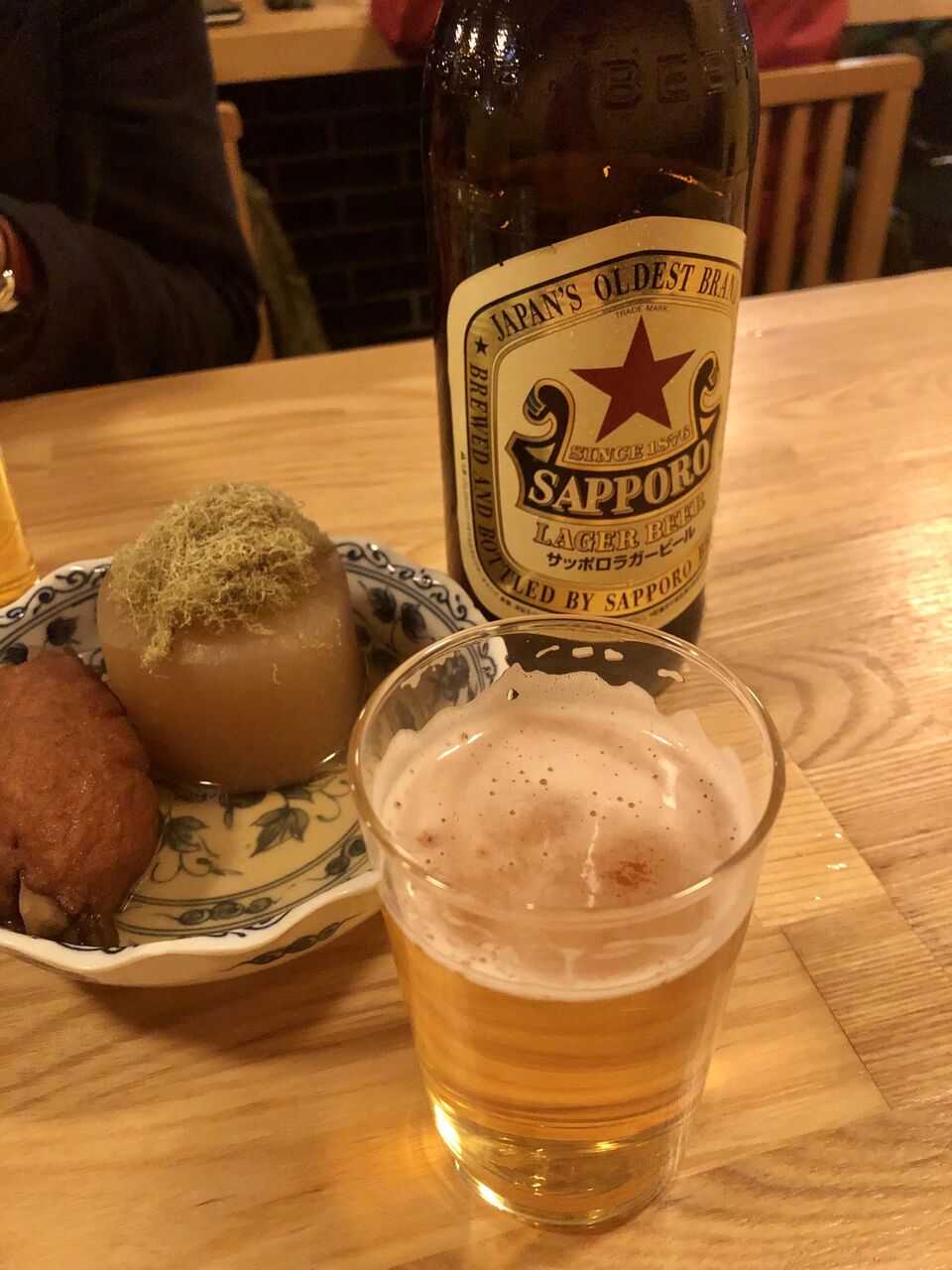 サッポロ赤星。ここでは終始これを飲んでいました。