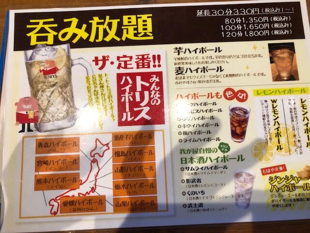 飲み放題メニュー。