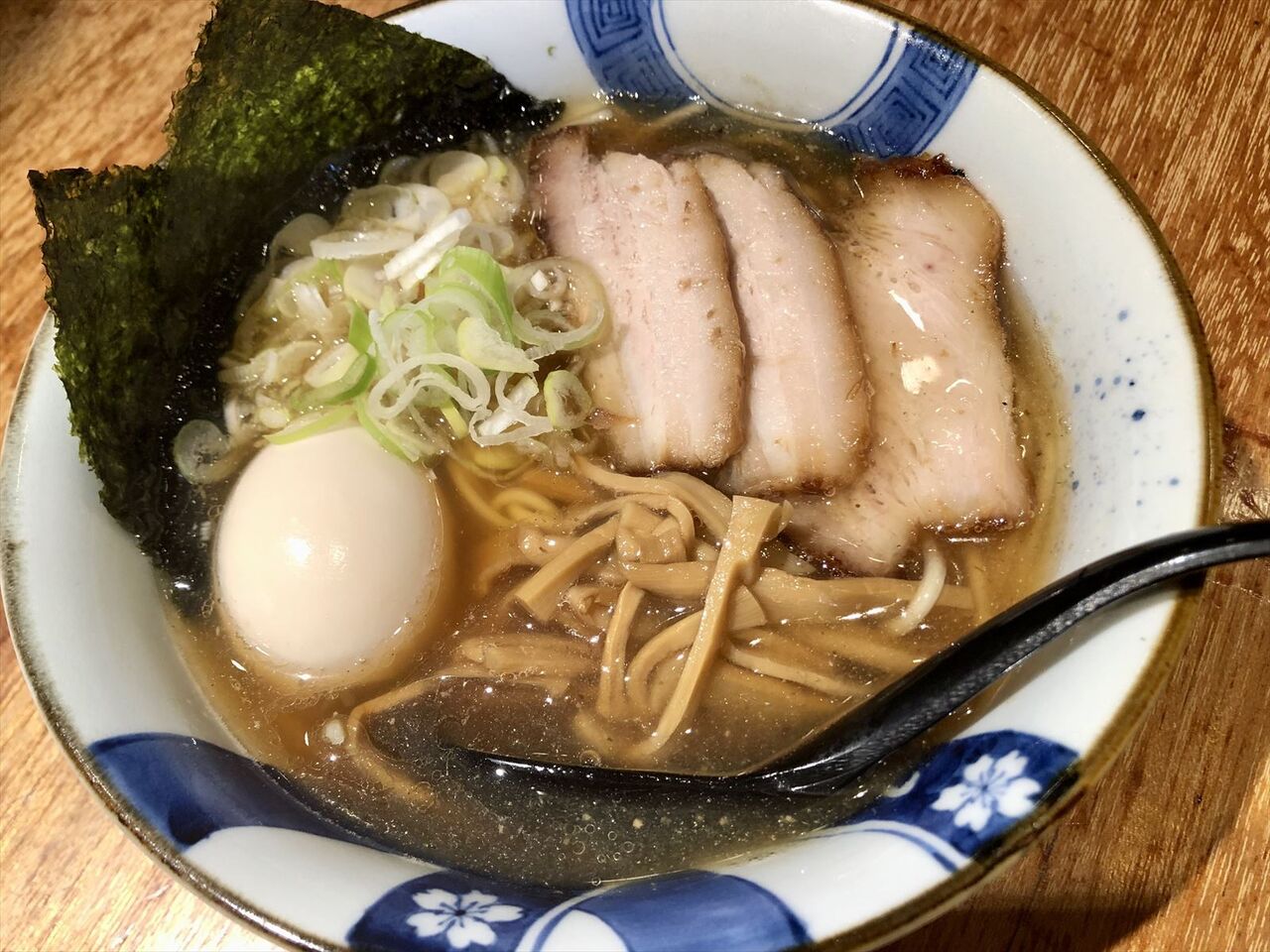 きました、私の「煮干そば 煮卵付き」♪