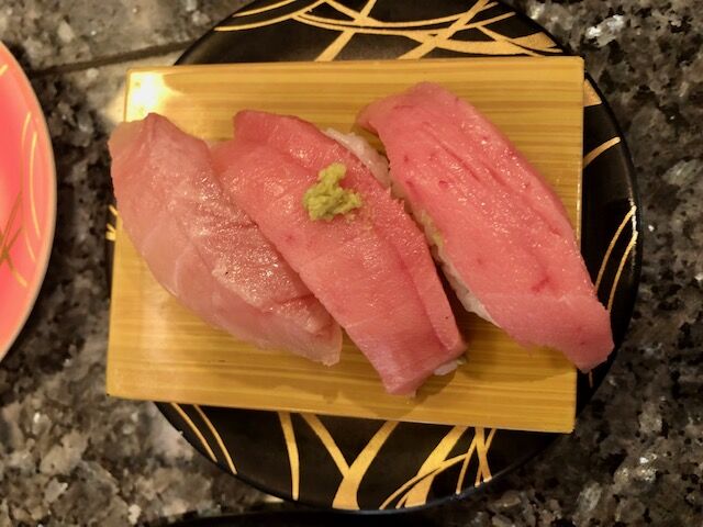 大トロと中トロとびんちょうトロの盛り合わせなのですが、どれがどれだかさっぱりわかりません。