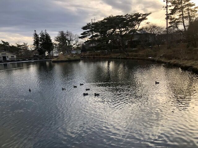 道中、少し雨が降ったりしていましたがやみましたので、お池の周りをお散歩です。