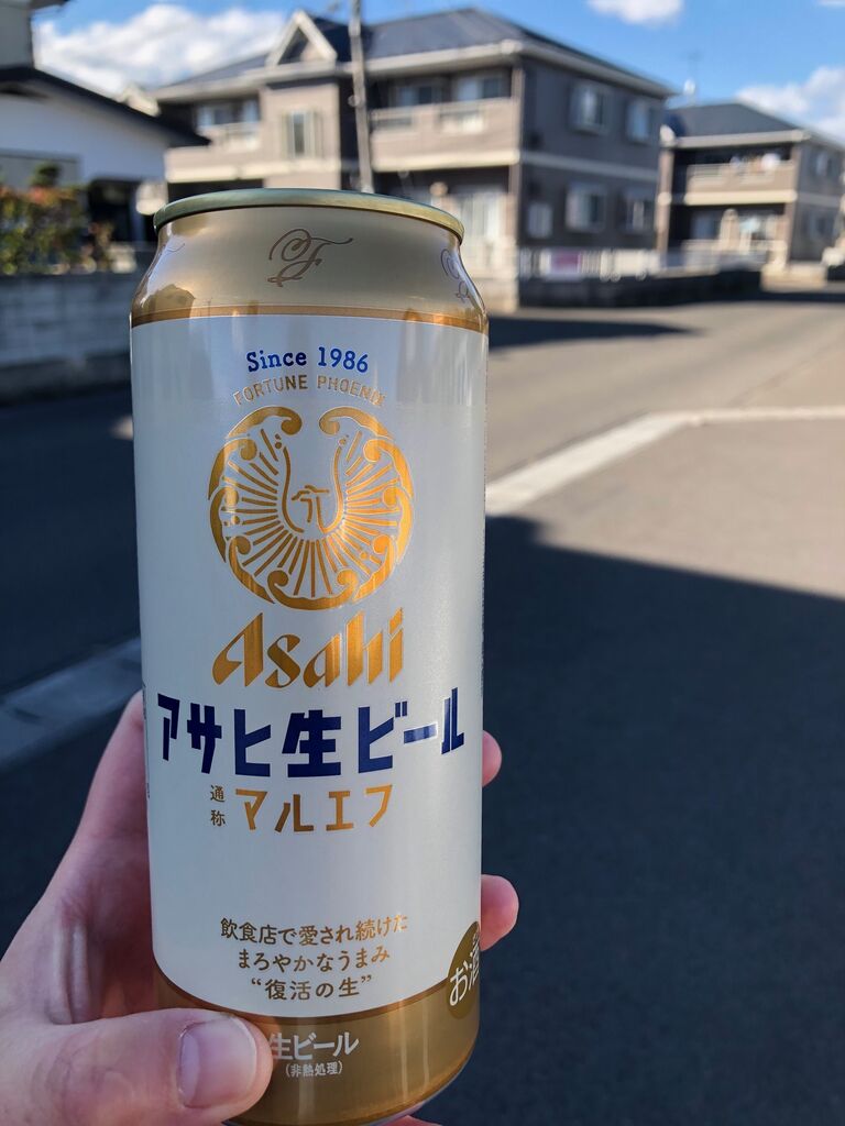 朝からビールをもって散歩