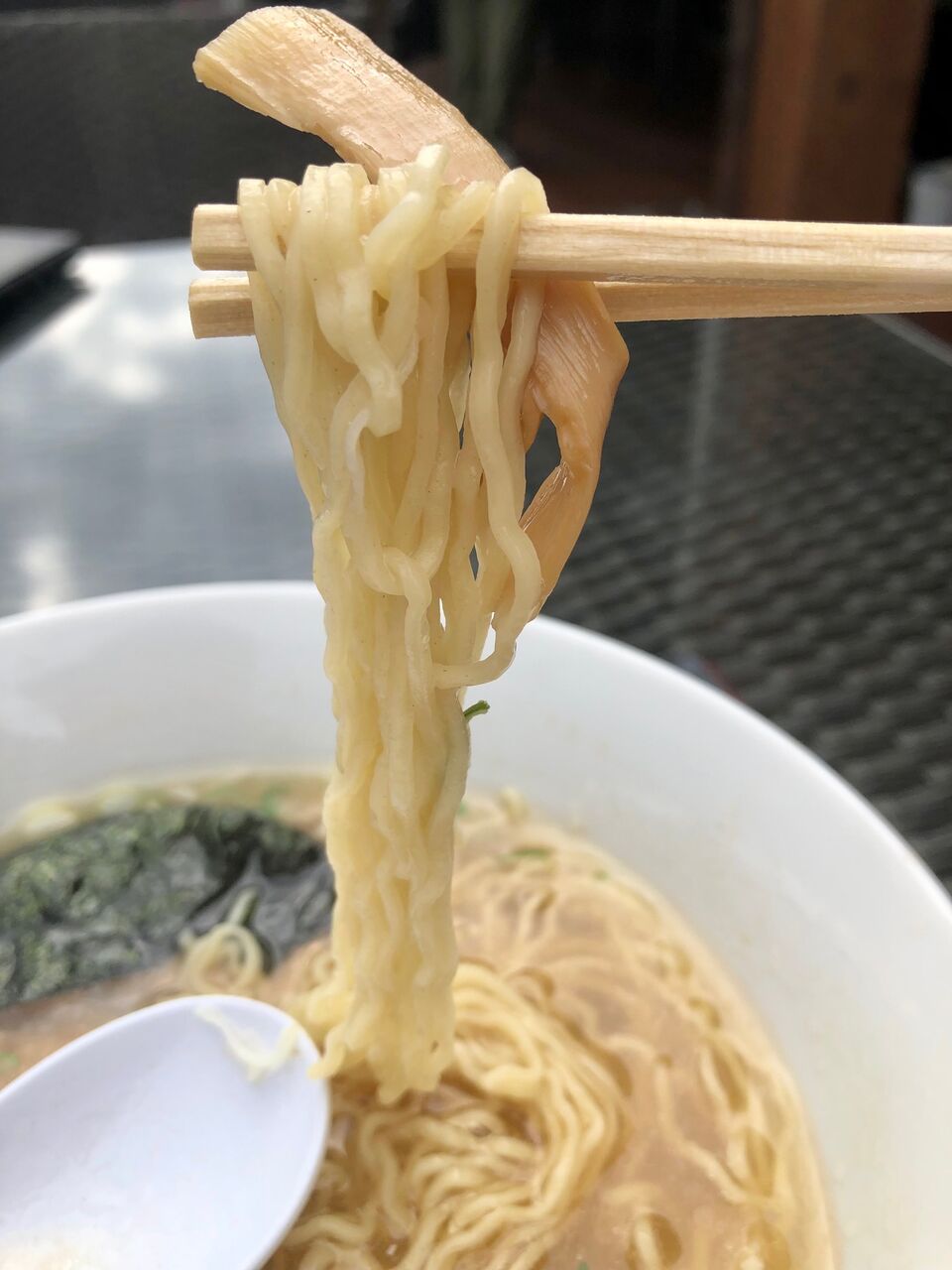 細麺でこのサバだしスープにぴったりマッチ。