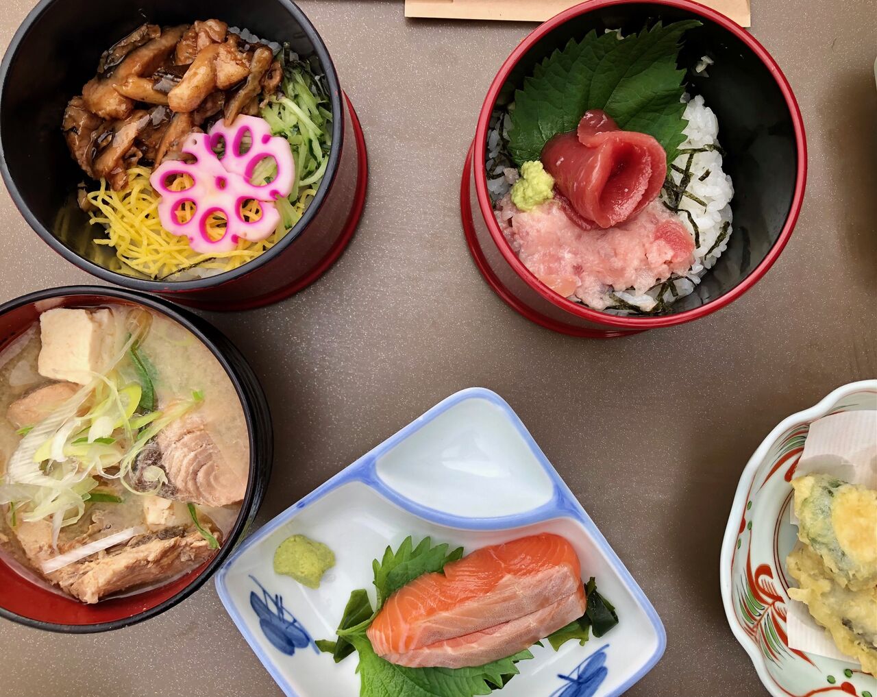 季節ごとに丼の内容や天ぷらの具材が変わるので、何度食べても毎回美味しい。