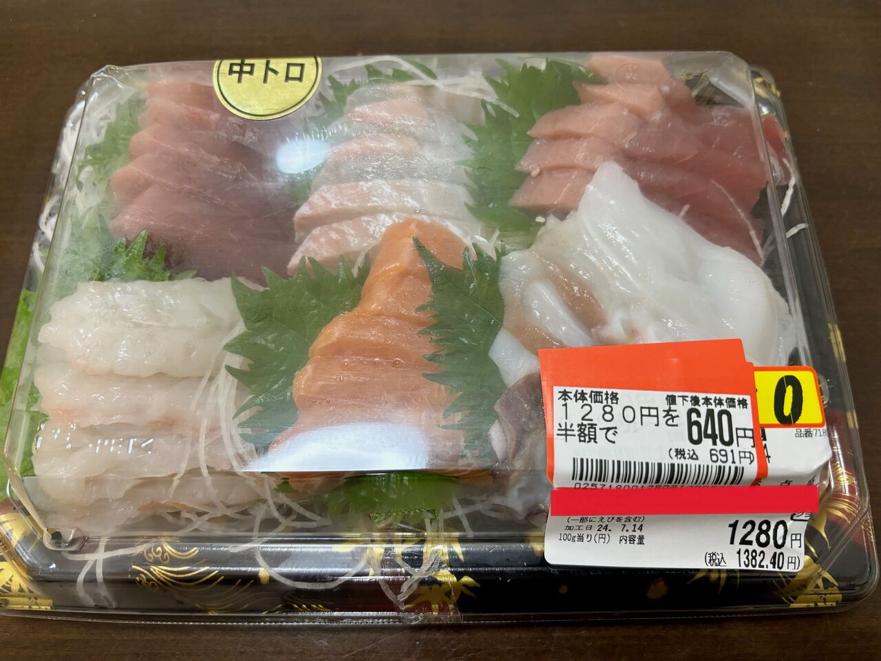 刺身半額に飛びつき