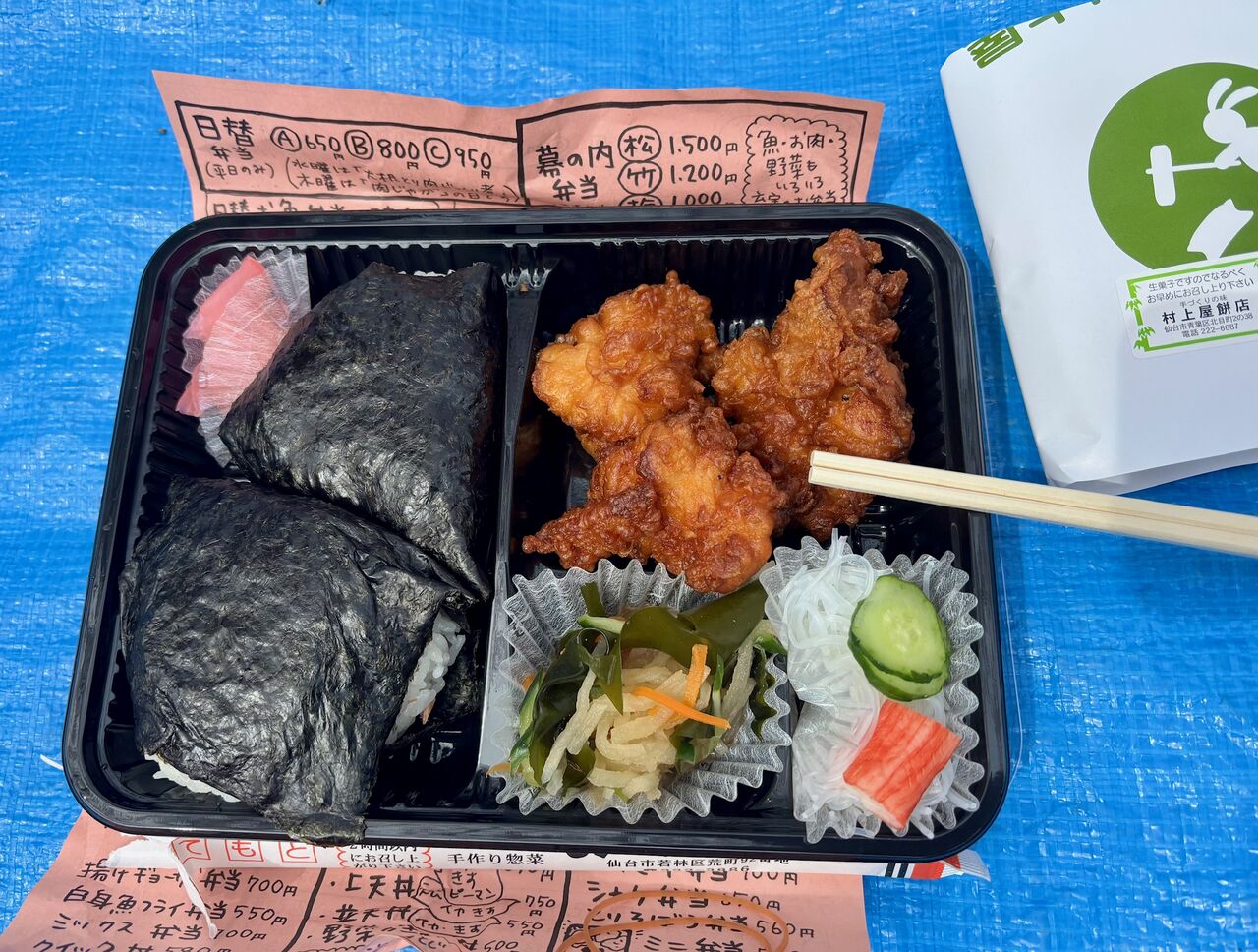お弁当と村上屋餅店のデザート付き(会費制)