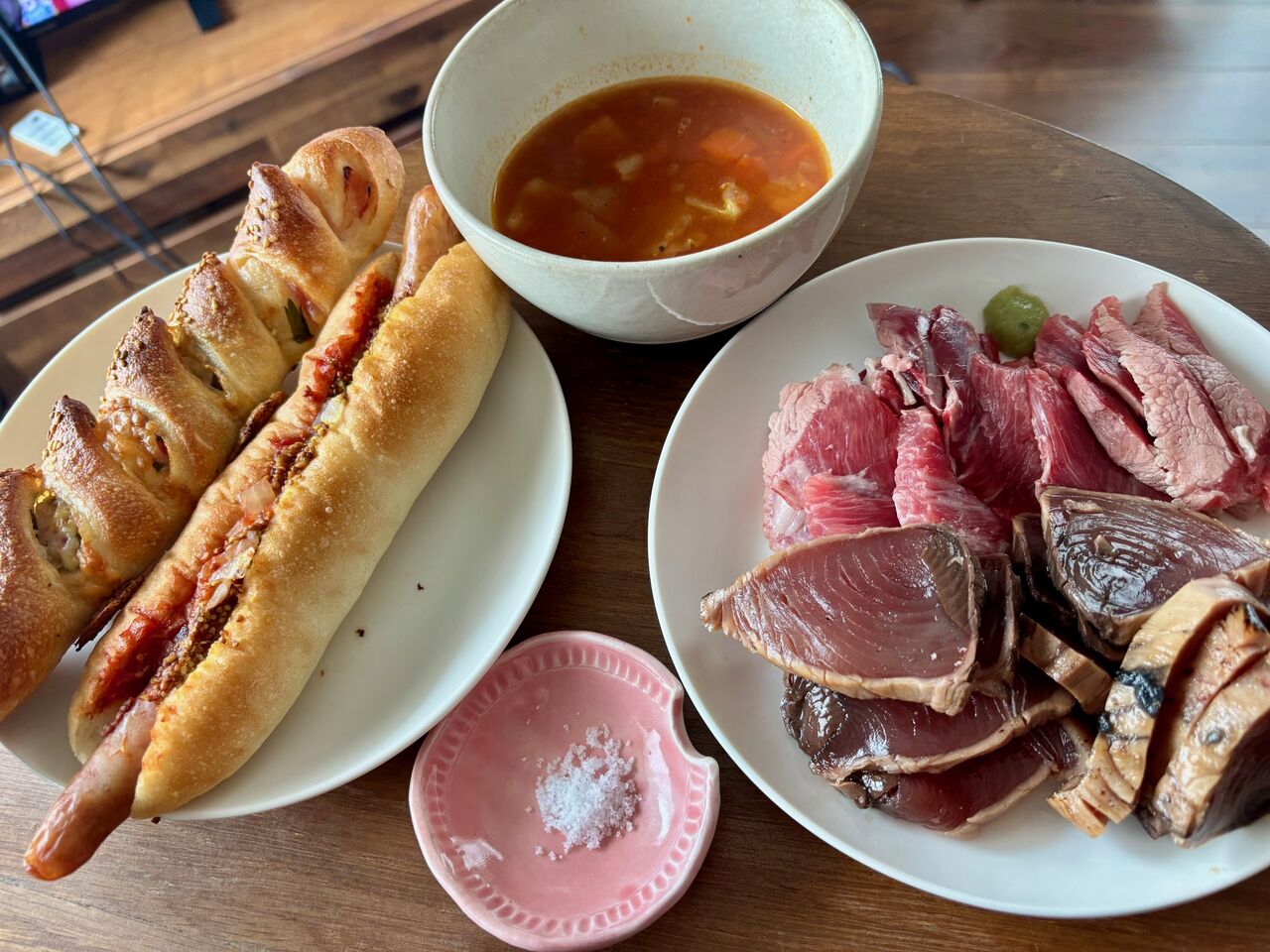 トマトスープもつけて画がちょっとよくわからないものになってしまったが、幸福の食卓ということで。