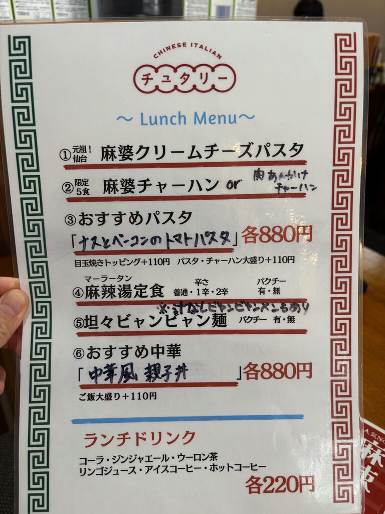 中華とイタリアンのお店だからランチメニューもこんな感じ。