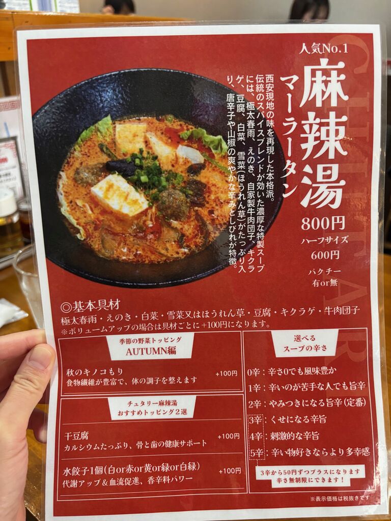 今はやりの麻辣湯は3種類だけどトッピング追加ができ、辛さも選べる