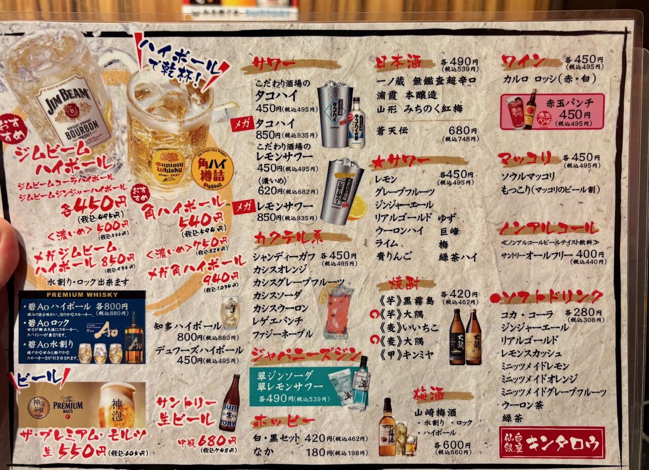 飲み物メニューはこんな感じで、