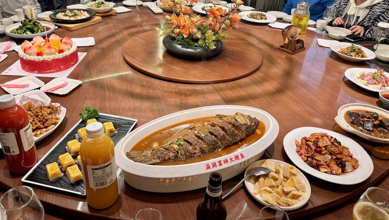 写真撮っていなかったんだけれど、このあと次々と料理が運ばれテーブルの茶色はほぼ見えなくなる。