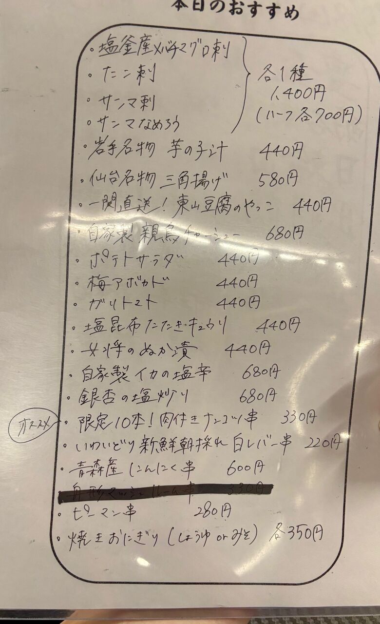 本日のおすすめ。