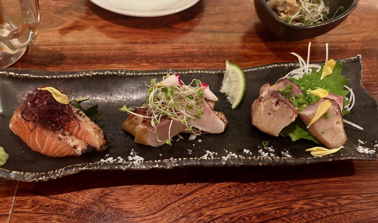 藁焼き三種盛りは控えめに言って最高でした。