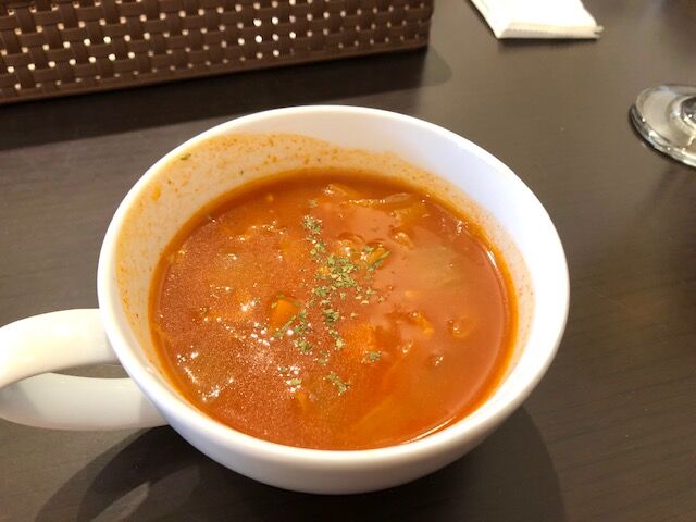 ミネストローネ。塩気が少なめでトマトの味がしっかりしました。