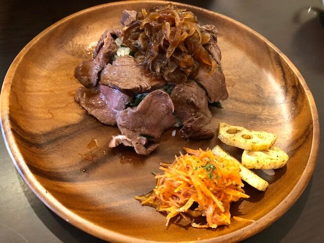 お肉の上に盛られた玉ねぎがしっかりローストしてあって美味しそうです。